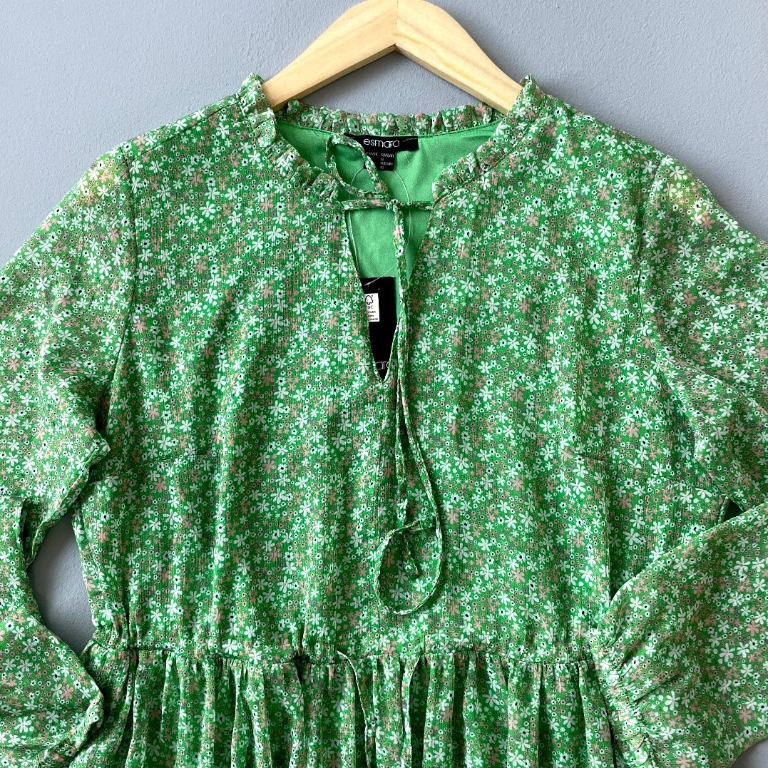 پیراهن زنانه حریر آستین دار سبز گل دار اسمارا اصل آلمان